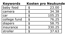 Damit können wir uns die Kosten pro Neukunde ausrechnen (Leadkosten/.04):